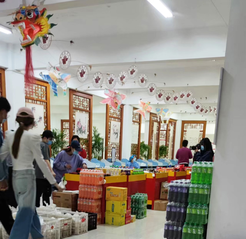 為保證公司經營不停擺,在確保疫情防控不松懈的前提下,經多次協商,經營管理板塊于4月6日至4月14日進駐被封閉的濰坊某學院,舉辦“書院超市”活動,為全校師生解決后勤供應難題。